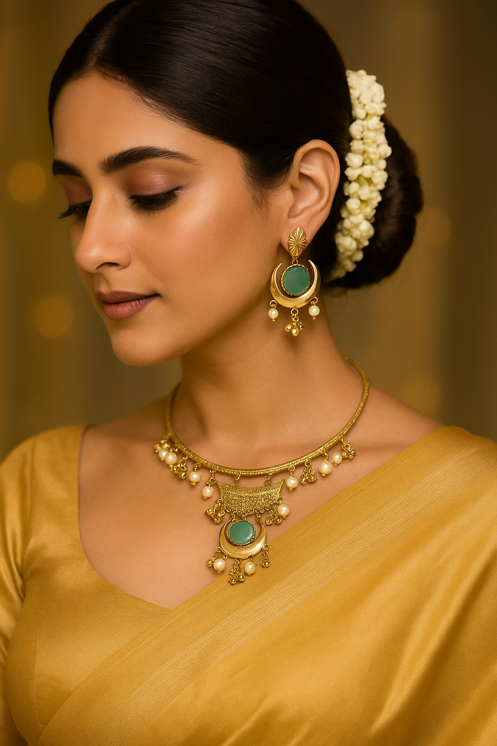 Chandrika - Green Necklace Set from House of Mrigaya by Nandini for Traditional and Festive Indian Look | for Gifting | for wedding