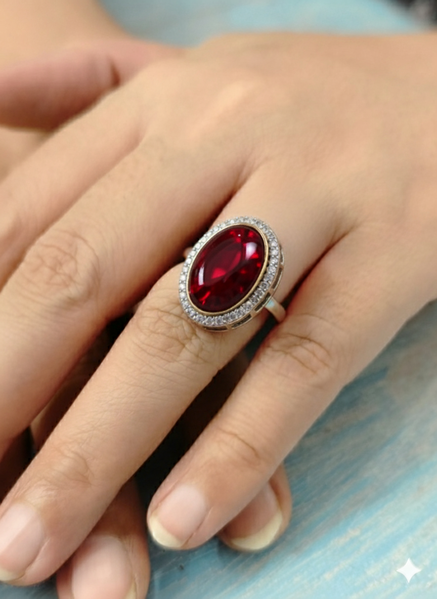 Crown Ring in red Colour Rings with antique finish and single big stone for festive occasions | for traditional look | for office Indian wear__Red