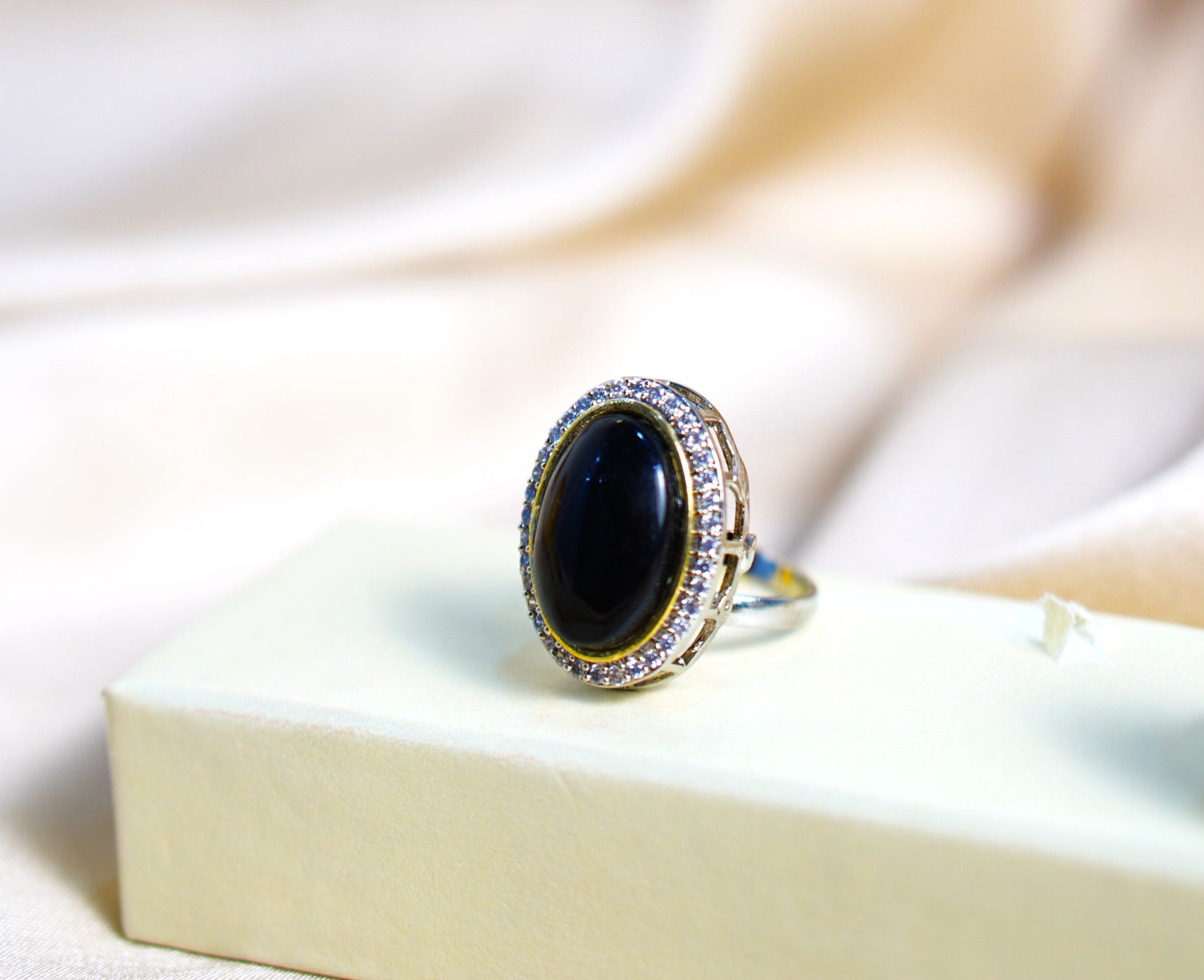 Product description: A masterpiece of design and elegance, this Black Gemstone Ring combines the intense allure of a deep black gemstone with the brilliance of fine diamonds. Set in a high-quality silver band, every detail reflects exceptional craftsmanship. Perfect for adding a touch of drama and refinement to your jewelry collection, this ring symbolizes power, grace, and timeless beauty.