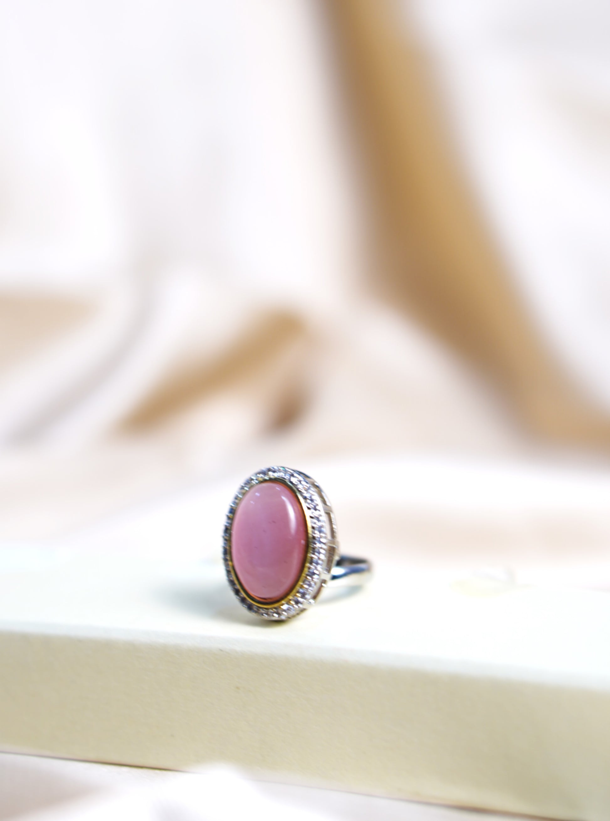 Product description: A masterpiece of design and elegance, this pink Gemstone Ring combines the intense allure of a deep pink gemstone with the brilliance of fine diamonds. Set in a high-quality silver band, every detail reflects exceptional craftsmanship. Perfect for adding a touch of drama and refinement to your jewelry collection, this ring symbolizes power, grace, and timeless beauty.