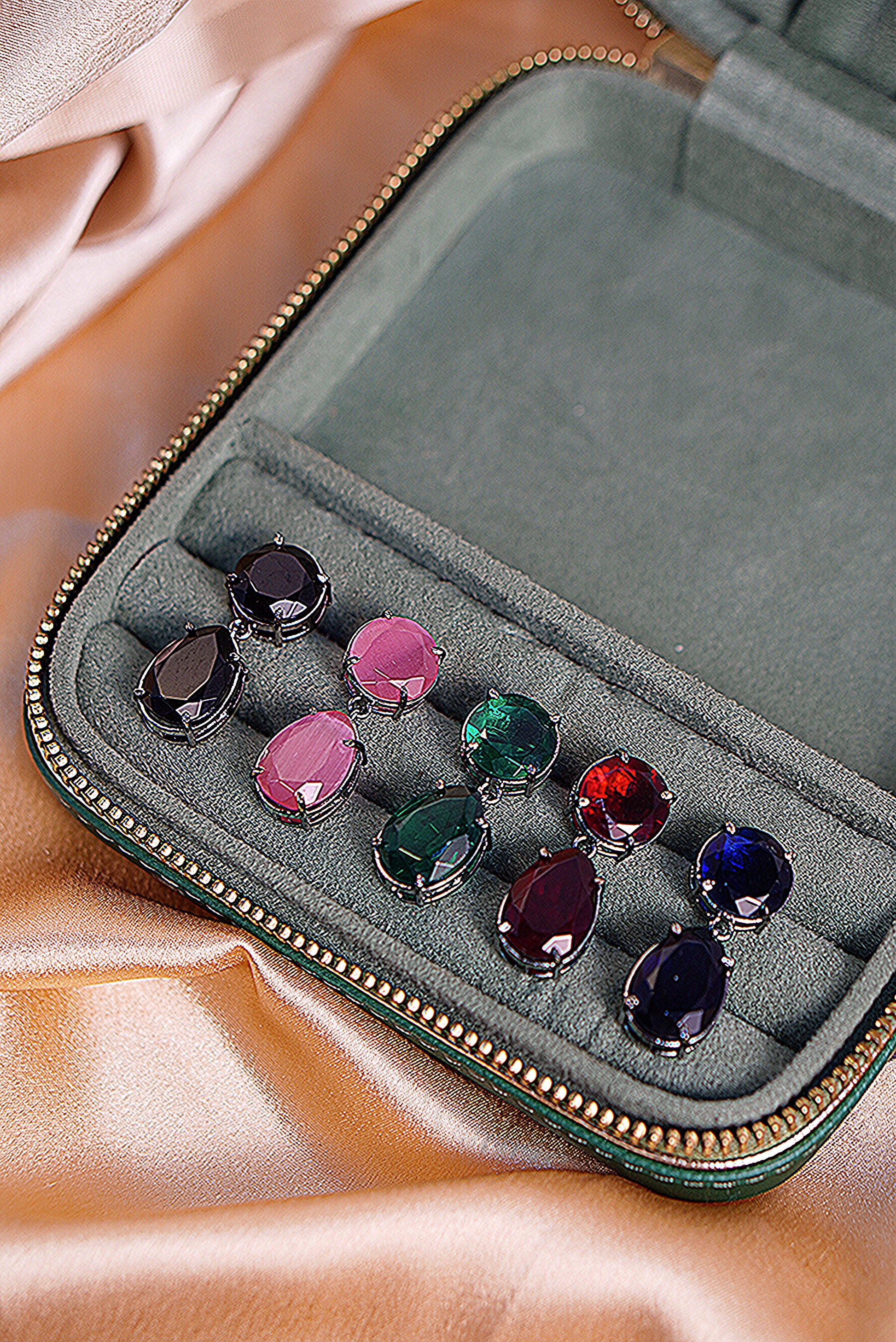 Dual oval-cut emeral stones with brilliant shine