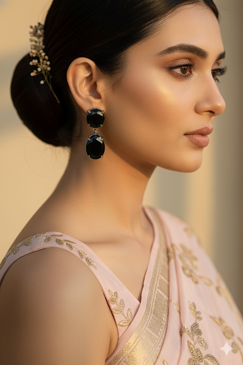 Embrace the allure of timeless beauty with our Drop Earrings. Featuring stunning dual stones set in a sleek silver-tone frame, these earrings radiate sophistication and luxury. The hue elegance and prosperity, making them perfect for festive occasions, celebrations, and evening wear. Handcrafted with precision, they strike the perfect balance between traditional charm and modern glamour.