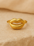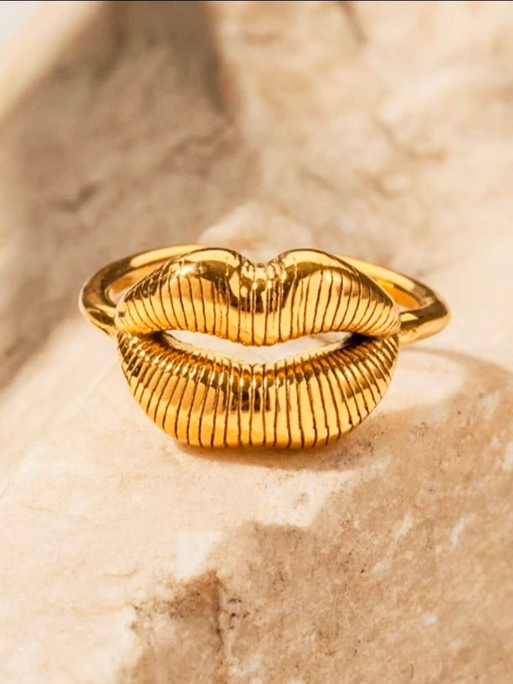 Add a bold, playful charm to your look with this stunning Lip-Shaped Gold Ring, crafted to make a statement. Its textured ridged detailing gives the lips a lifelike, sculpted appeal, while the sleek gold finish adds a touch of luxury. Perfect for fashion-forward individuals who love unique, standout accessories. Wear it solo or stack it—this ring instantly elevates any outfit with its quirky elegance.