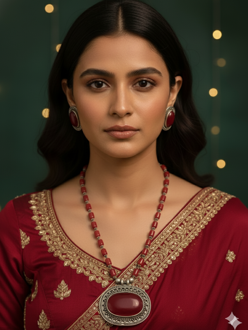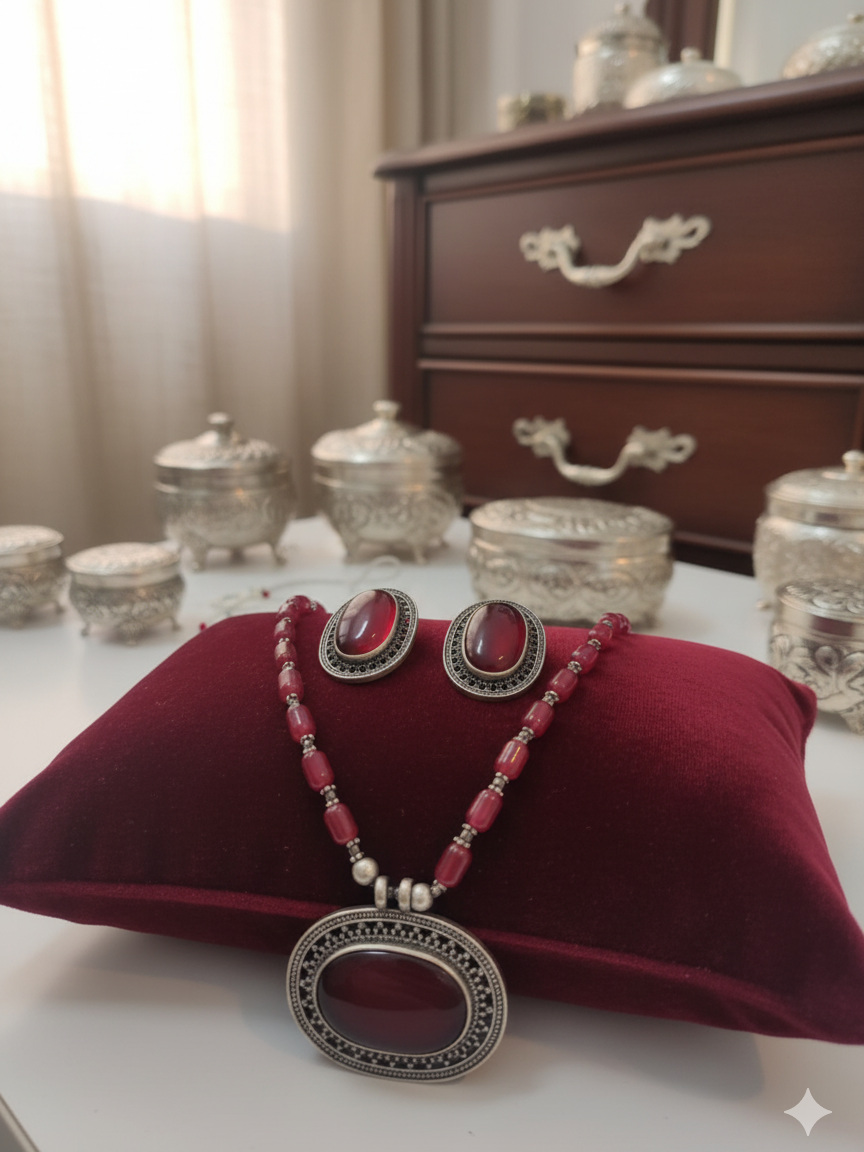 Embrace timeless beauty with the Lalitha's Light necklace Set, a stunning handcrafted jewellery piece that captures the charm of traditional artistry. The intricate detailing and antique silver finish create an aura of regal elegance, making it perfect for festive occasions, weddings, and ethnic celebrations.
