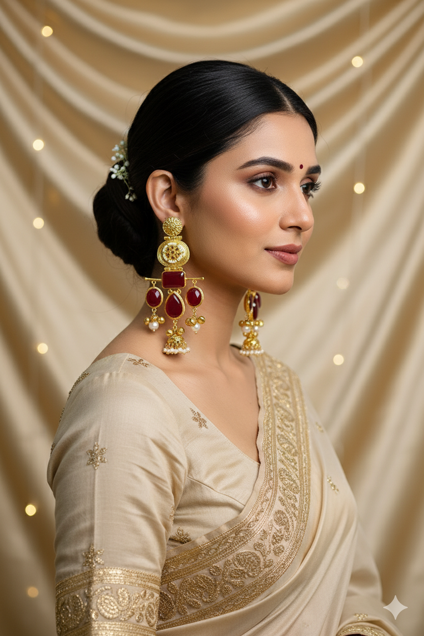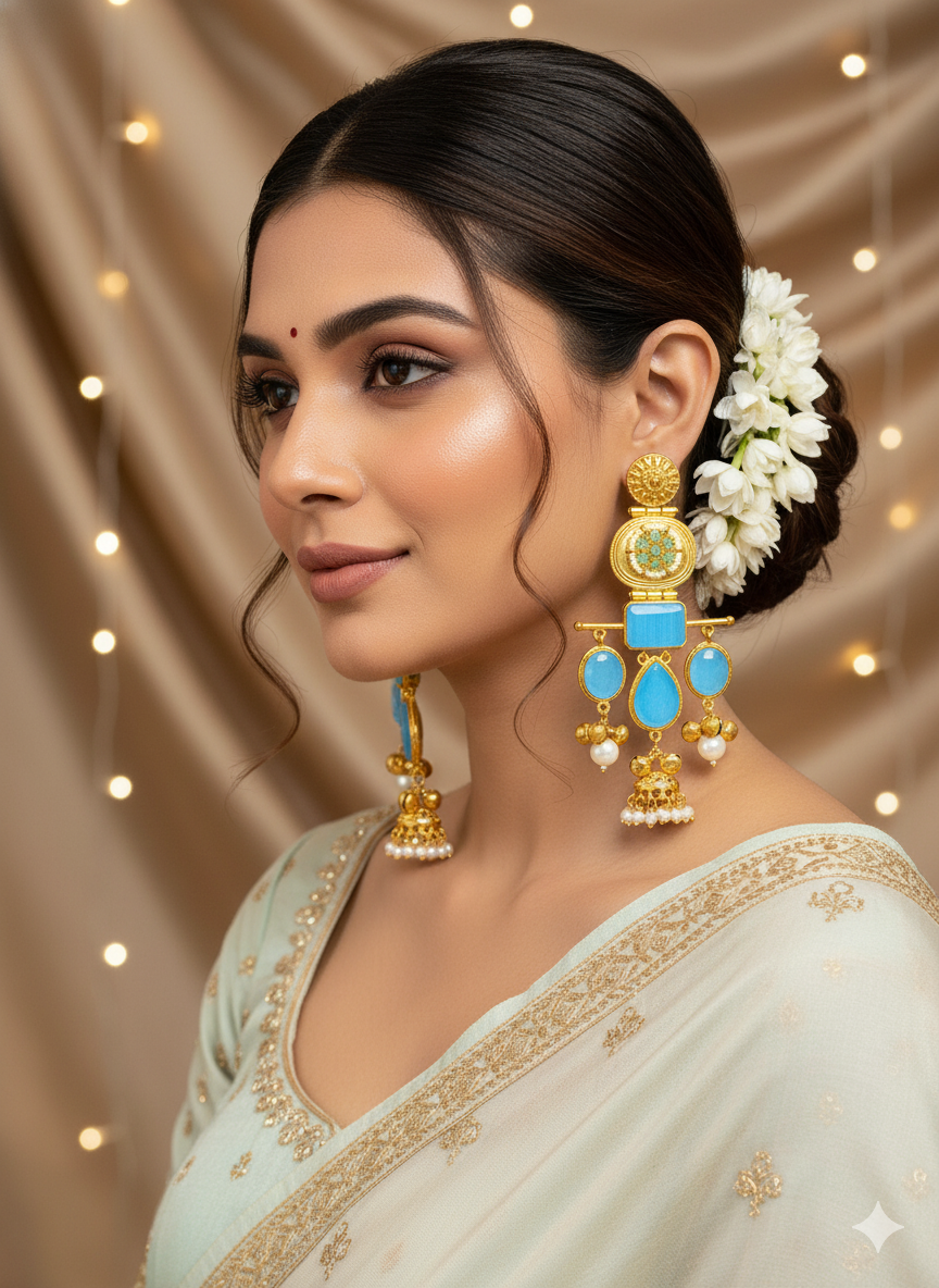 Pair these earrings with a pastel saree or a deep emerald lehenga to create a regal, head-turning look.