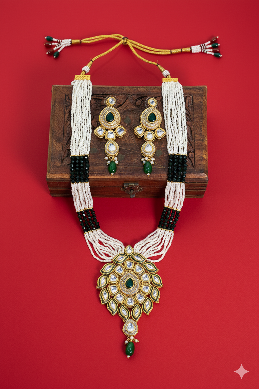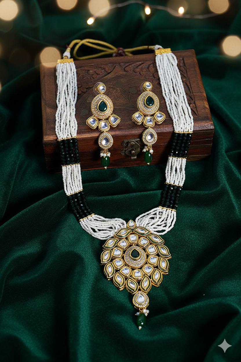 Noor Rani necklace set from house of Mrigaya by Nandini for Traditional and Festive Indian Look | for Gifting | Premium & Luxury Jewelry__Green