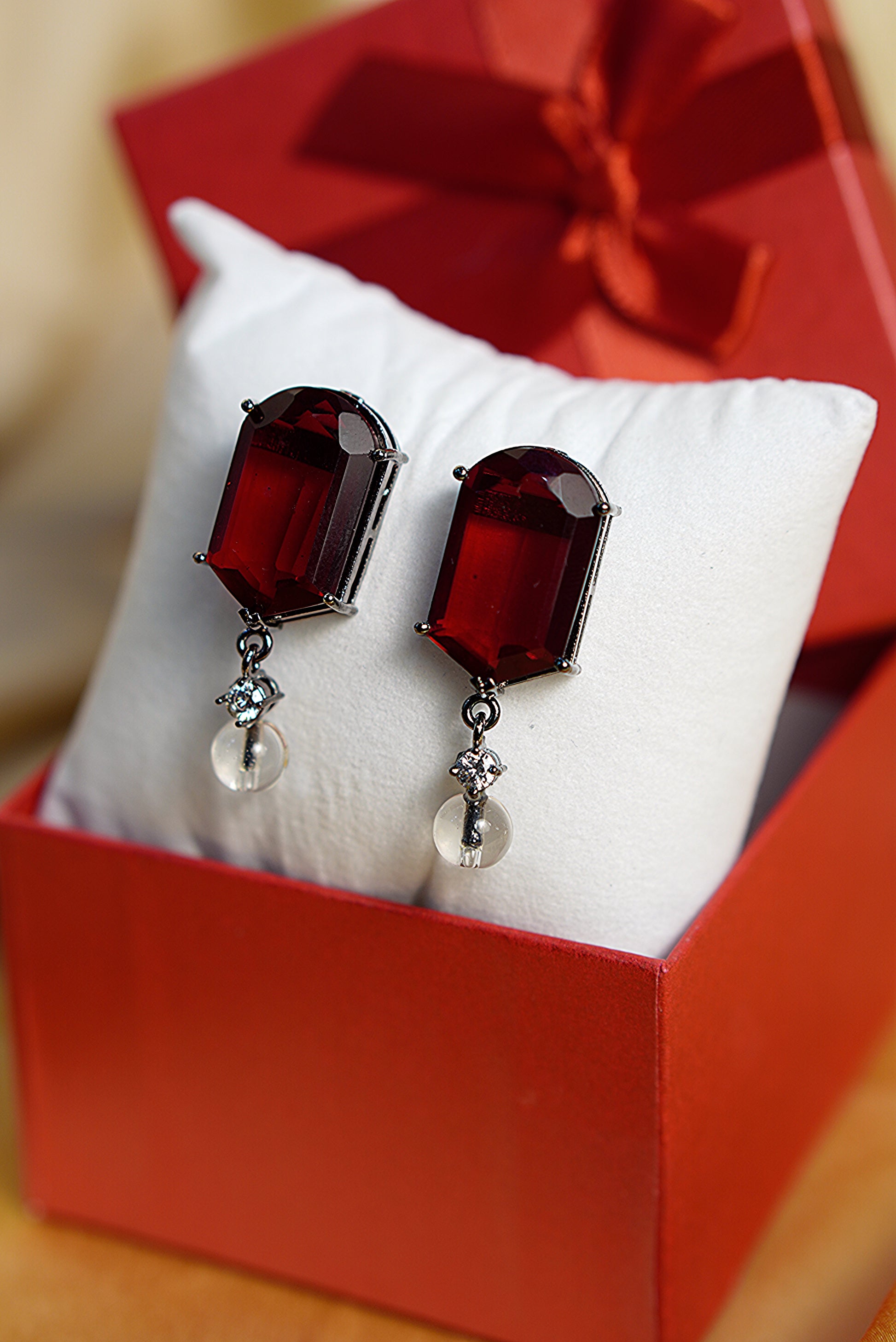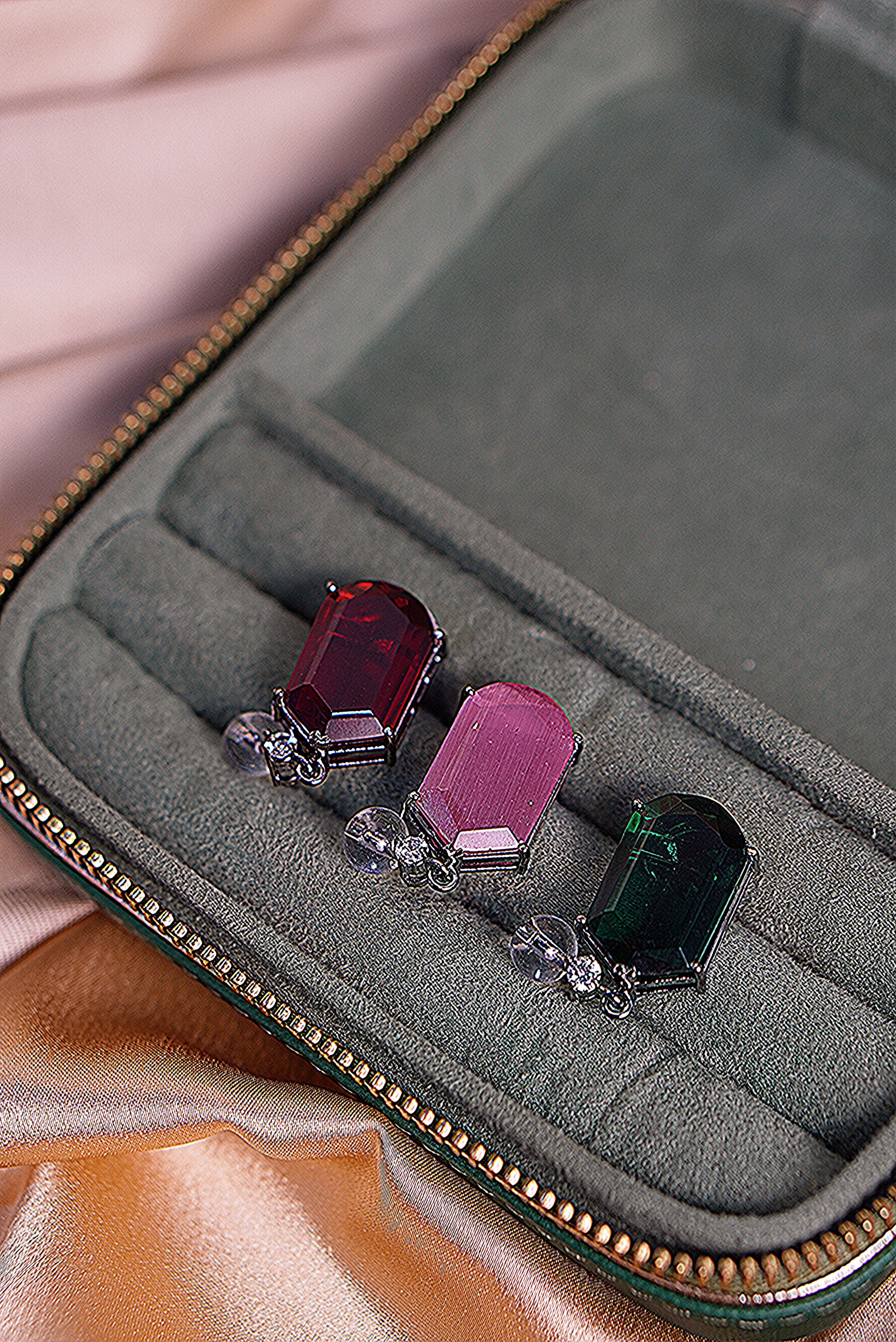 Elevate your style with our Emerald-Cut Gemstone Earrings, crafted to perfection with a bold, luxurious appeal. Featuring striking emerald-cut stones in rich jewel tones – ruby red, royal pink, and deep green – each piece is accentuated with sparkling crystal drops for a refined finish.